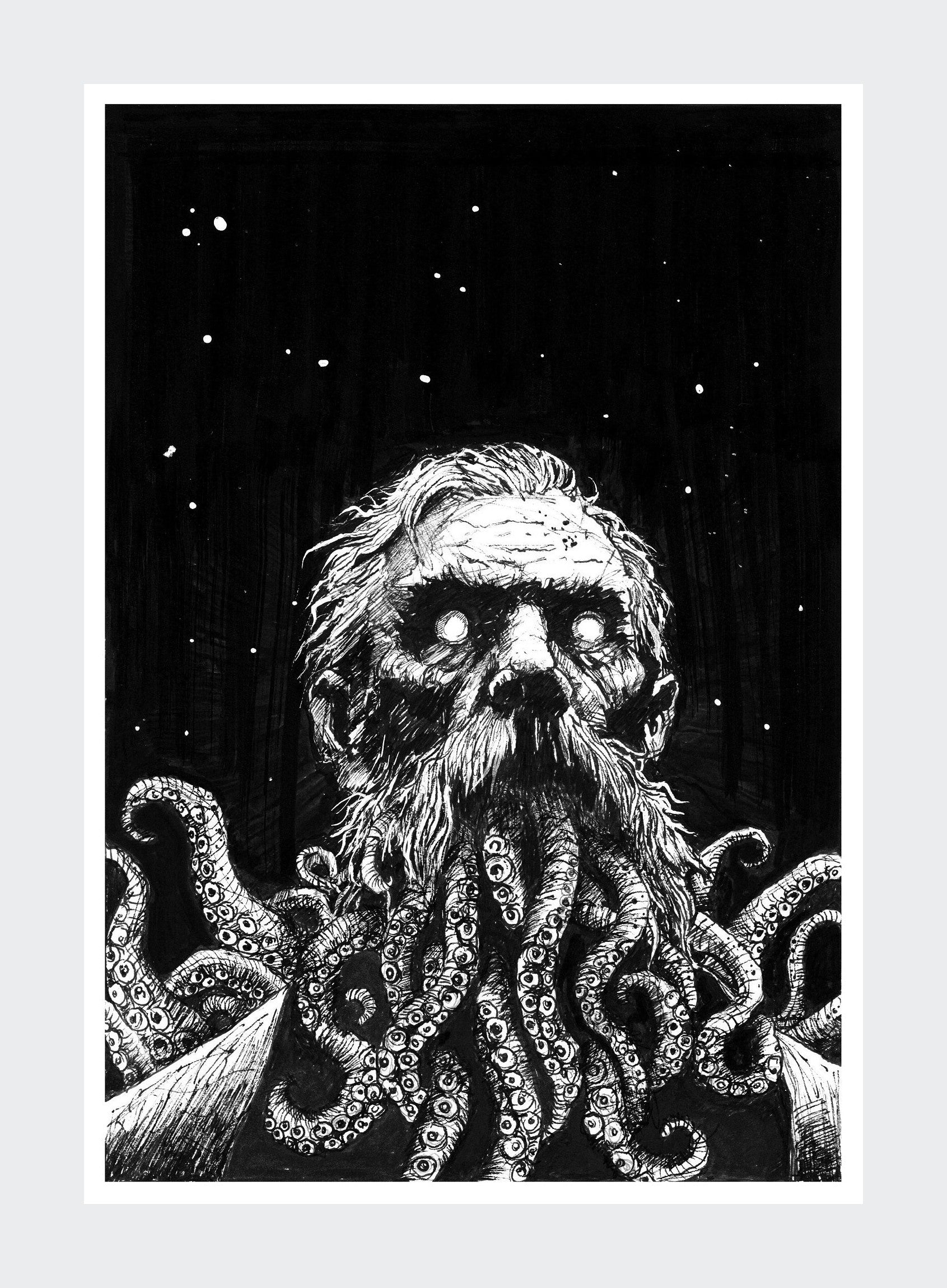 Illustration réalisée à l'occasion de l'exposition accompagnant la sortie du livre L'appel de Cthulhu (Howard Philips Lovecraft) publié aux éditions Tibert - galerie arts factory, septembre 2025.